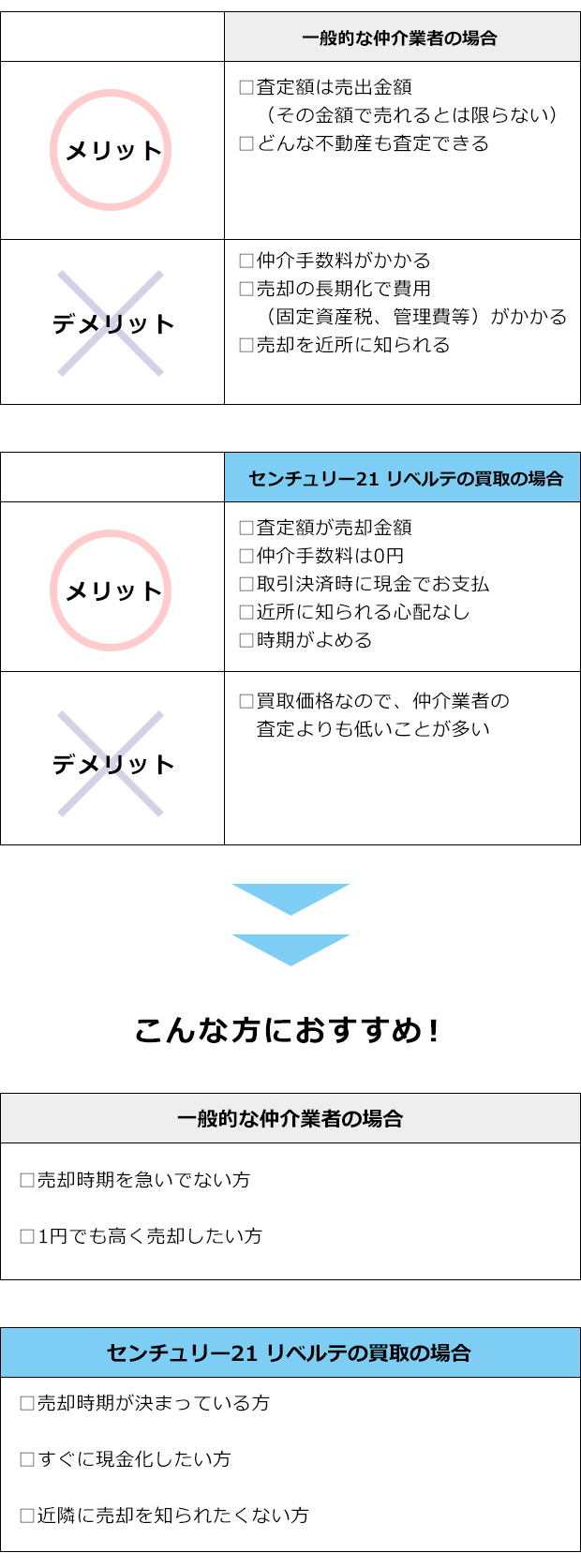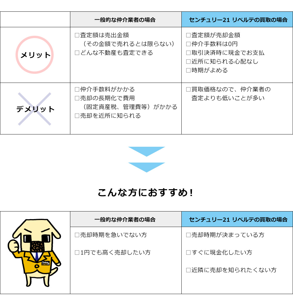 私たちが直接不動産を買い取る場合のメリットとデメリットを比較してみましょう。